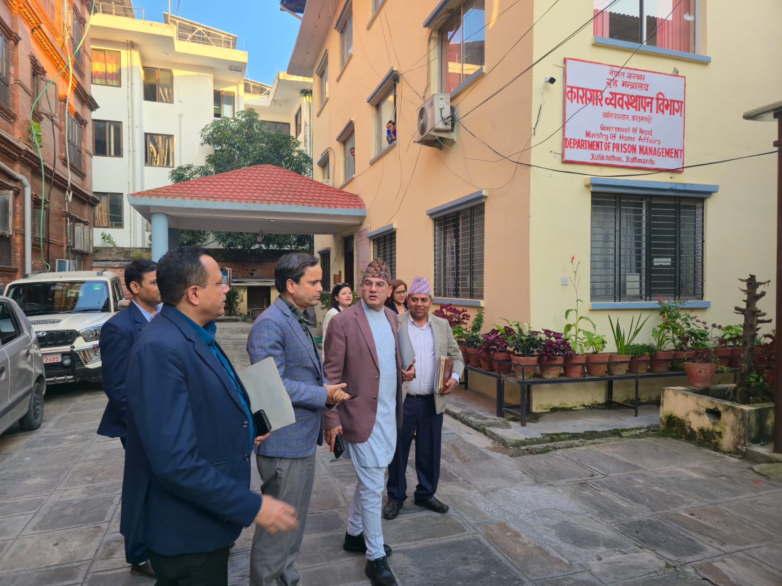 कारागार व्यवस्थाप विभागको अनुगमन तथा निरीक्षण गर्नु हुँदै गृह मन्त्री माननीय ओम प्रकाश अर्यालज्यू